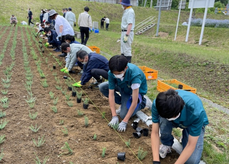 令和4年6月27日「亜麻のふるさと当別ダム」で亜麻苗の植栽イベント