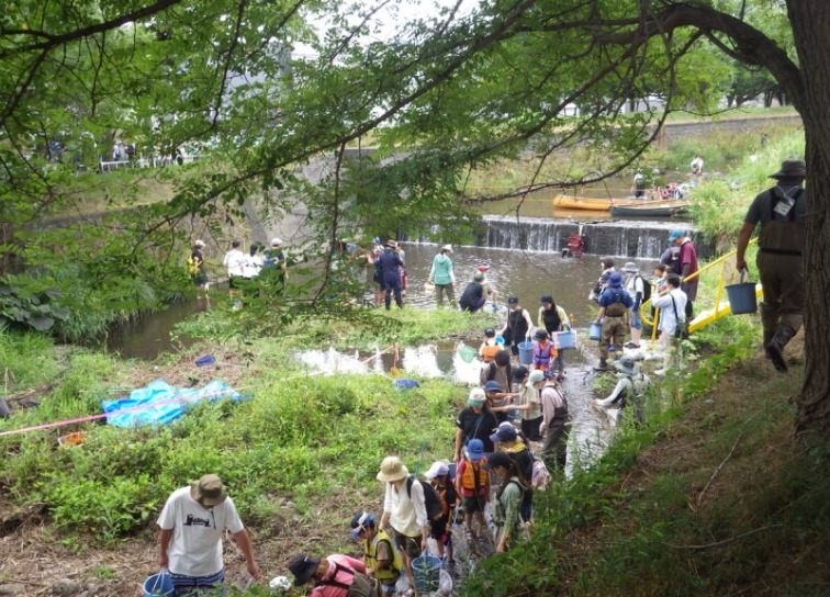 「川と子ども」をテーマにした地域主催のお祭りに、当社は立ち上げ当初からお手伝いとして参加。川や水辺の生物に実際に触れあうことで、生き物や自然環境について知り、考えるきっかけづくりの良い機会となっています。当社では、事前準備から当日の生き物の説明、出店のお手伝いを毎年担当しています。