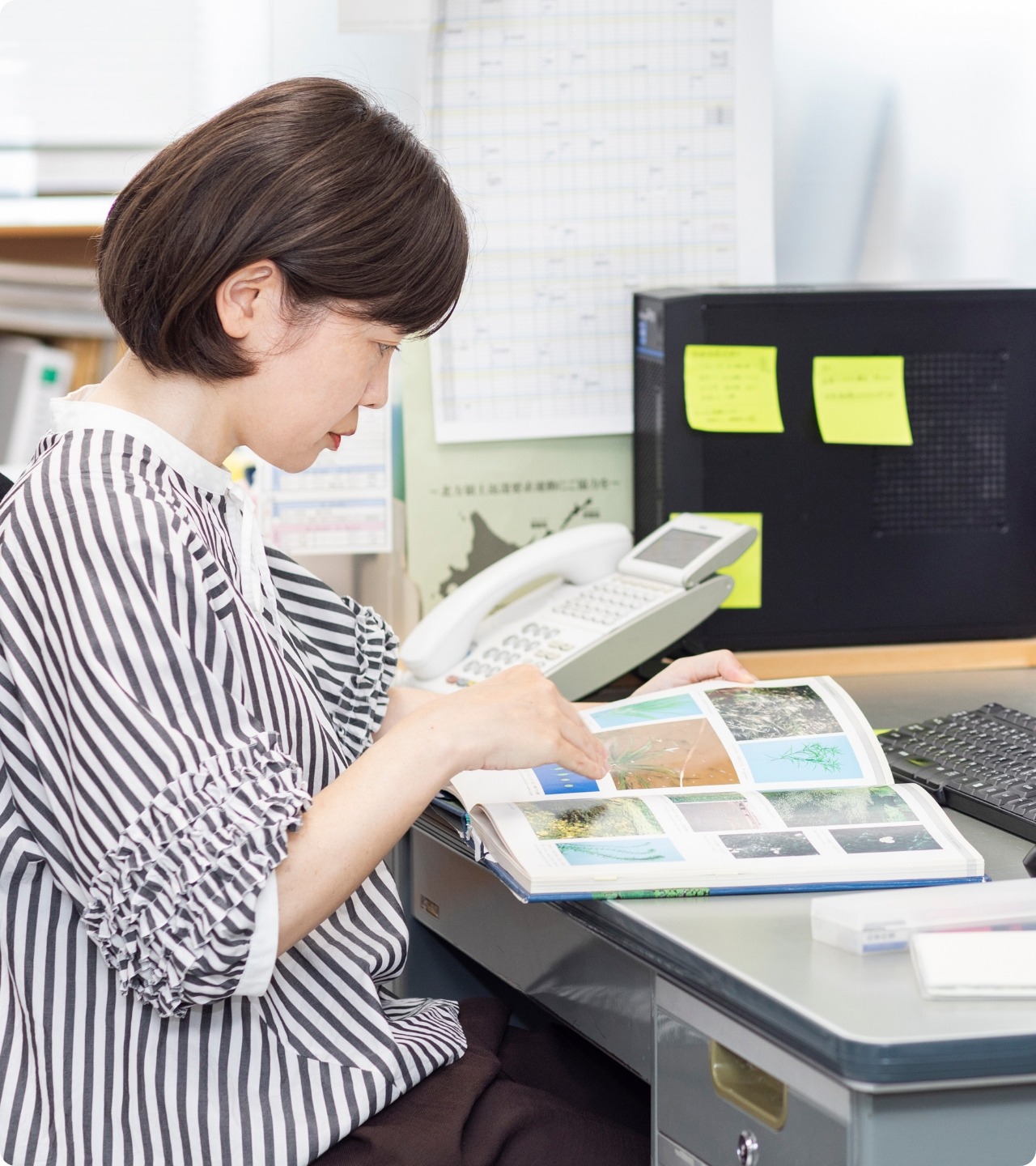 - 大学で植物分類学を専攻しており、学んだことを活かせる仕事がしたいと思っていました。もともと自然に触れることが好きだったこともあり、北海道の植物に関わる仕事ができる当社に入社しました。