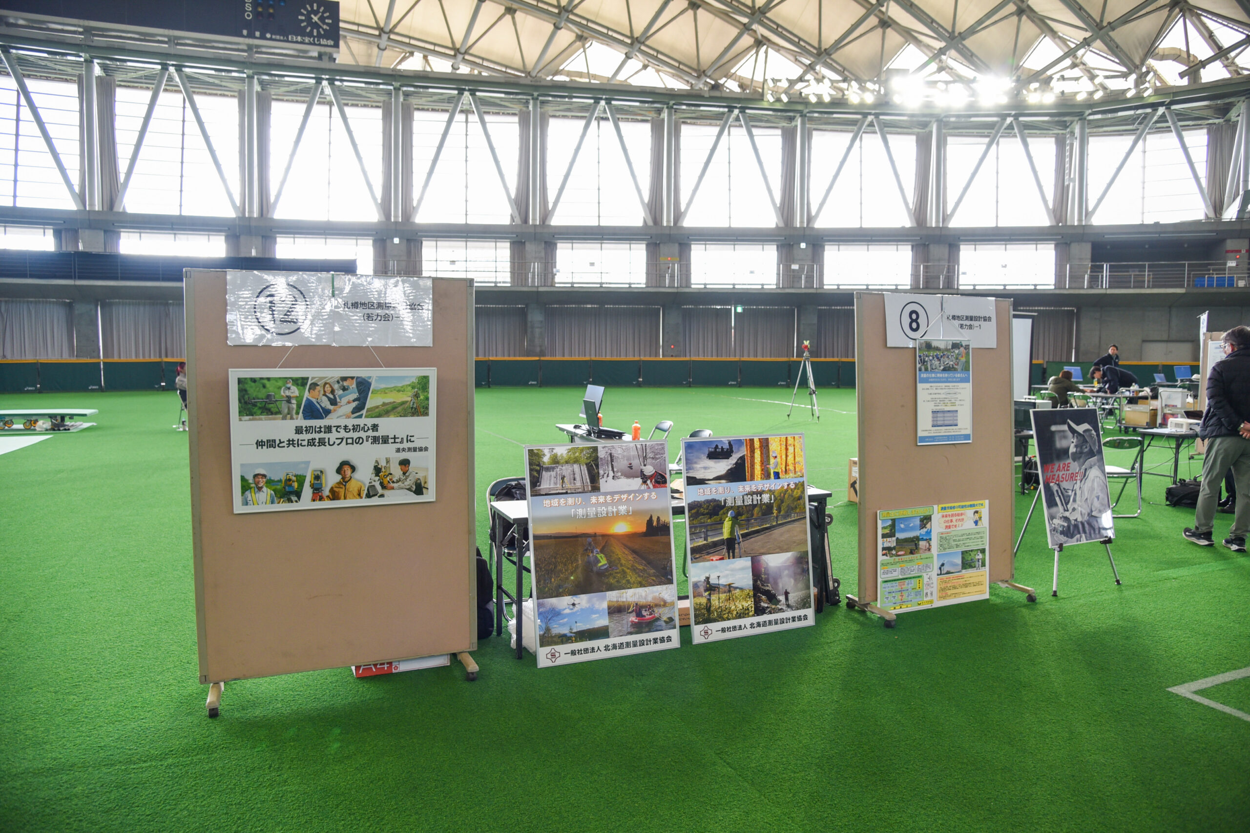 我々は測量設計業のブースで測量体験や川の設計などの説明を行いました。
