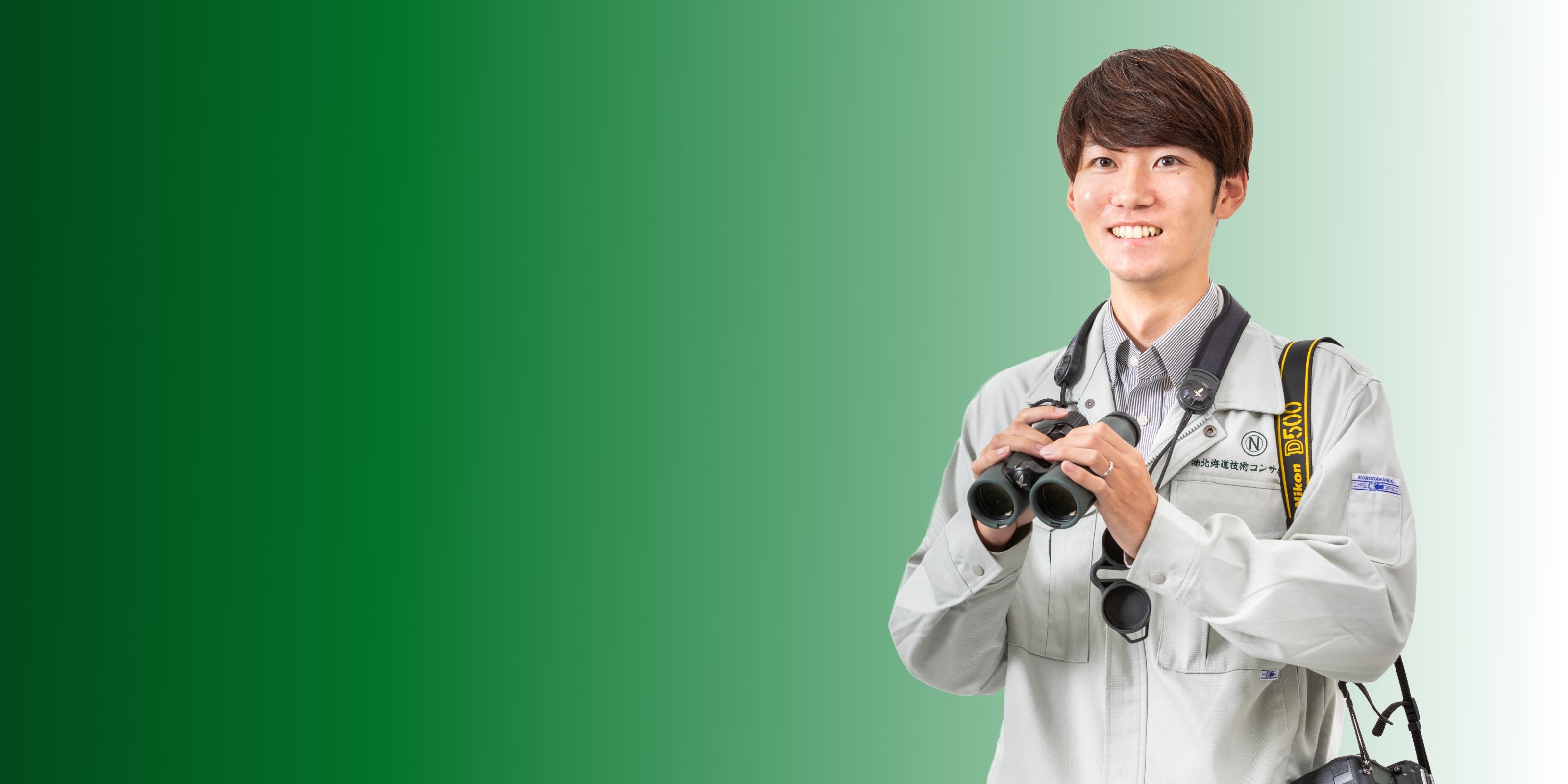 - 小学生の頃から鳥が大好きで、大学では鳥類の生態や個体群動態について研究していました。就職活動では、学芸員やレンジャーなども考えましたが、開発事業に対して、生物への影響を把握し、保全対策を提案する建設コンサルタントの仕事に最も魅力を感じました。