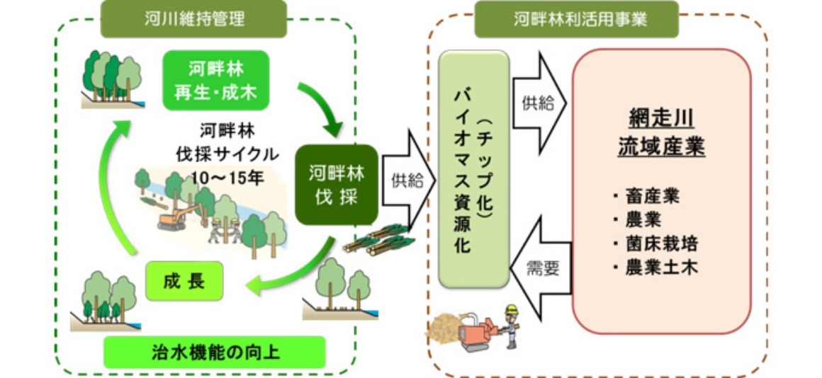 河川に繁茂する河畔林は、生態系にとっては貴重な生息場となりえますが、あまりに繁茂しすぎると、洪水時の河川水が流れにくくなり、治水の安全度を下げてしまいます。そこで、河畔林をどの程度伐採すればよいかを不等流計算により評価して、生態系に配慮しながら計画を立てます。 その際、ヤナギなどの樹木を一斉に伐採してしまうと、伐ったところから再び枝を伸ばし(萌芽)、伐採する前よりも治水の安全度が下がる場合もあります。そのため、伐採方法もこのようなことが起こらないよう検討します。